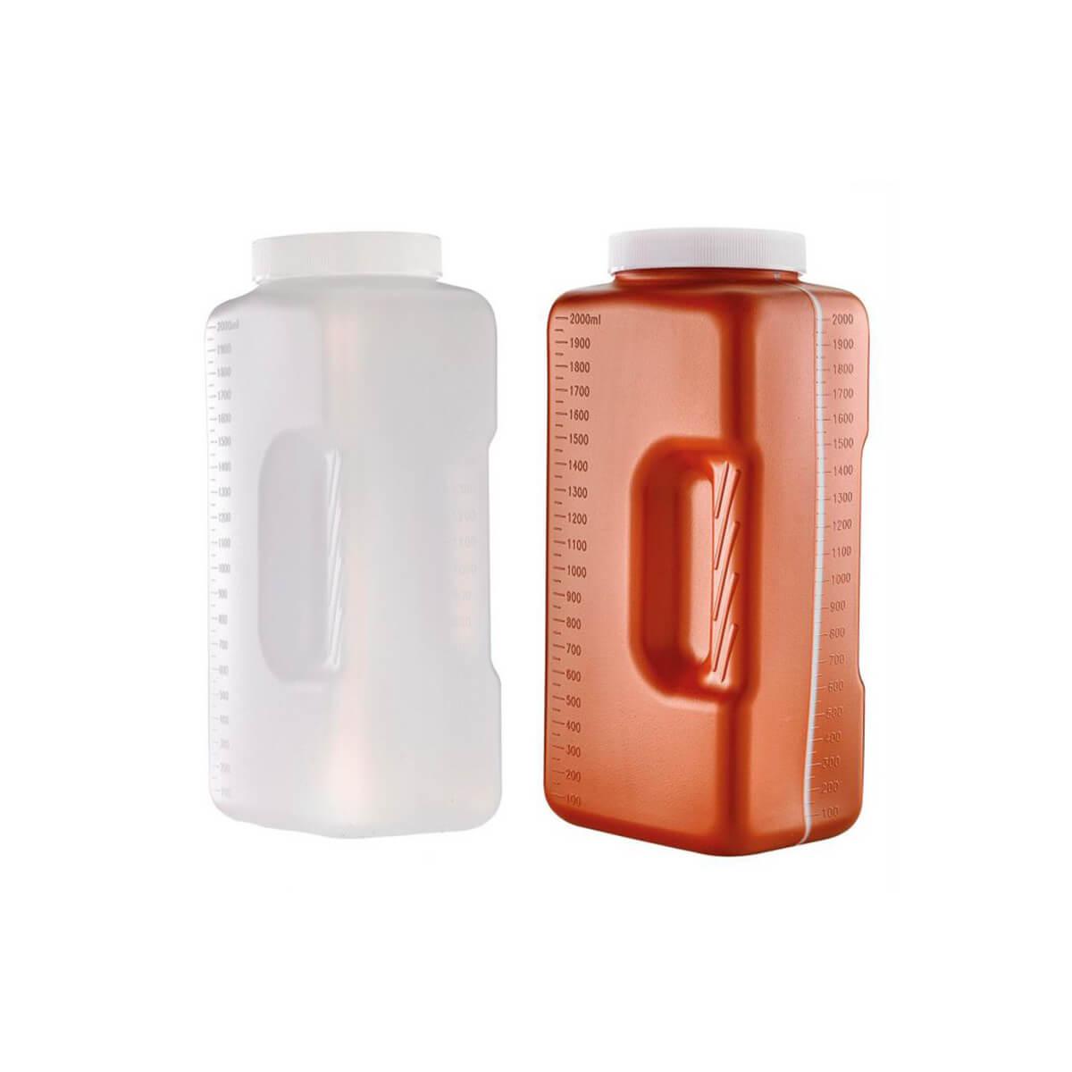 Flacon d'urine à ouverture large pour recueil des urines de 24h.