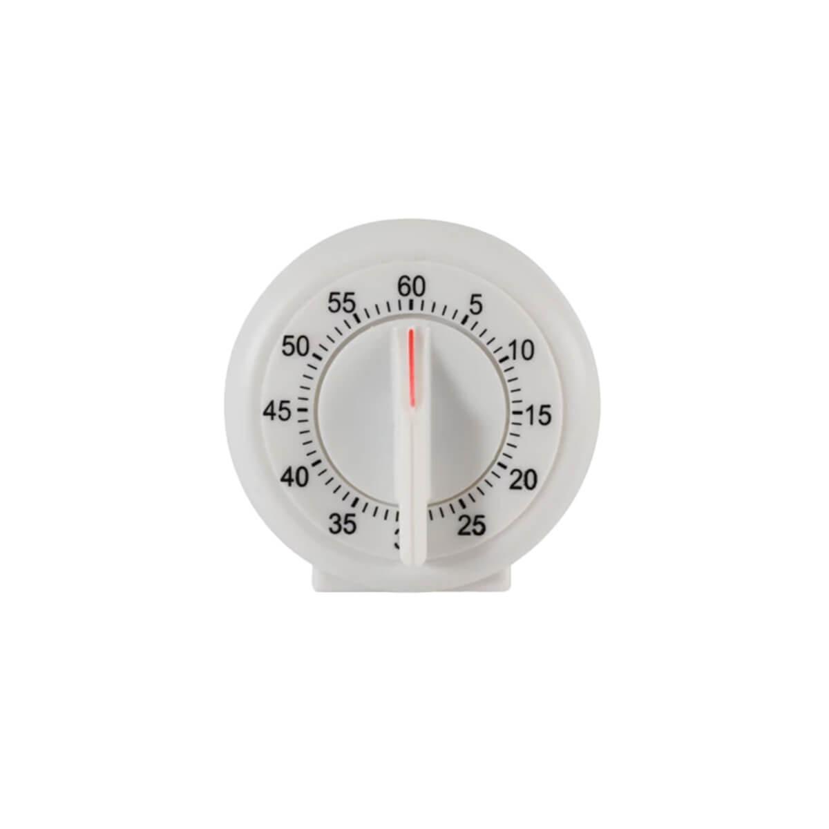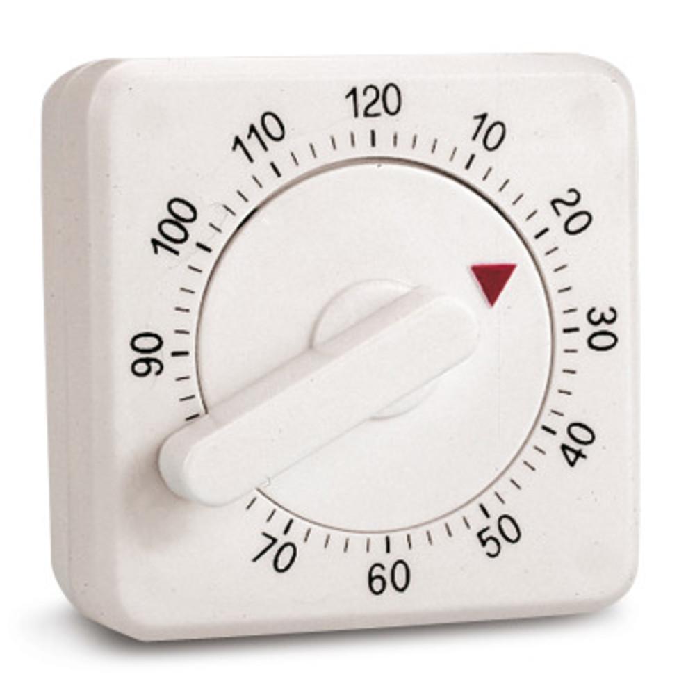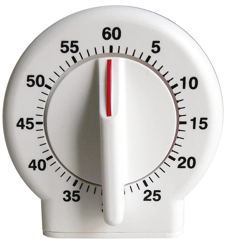 Minuteur de 60 minutes. Base antidérapante permettant d’utiliser le minuteur d’une seule main.