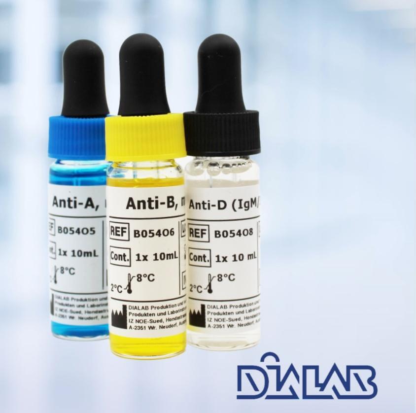 Réactifs de diagnostic pour la détermination qualitative in vitro des groupes sanguins humains du système ABO ainsi que de certains groupes sanguins rares par voie manuelle ou automatisée.