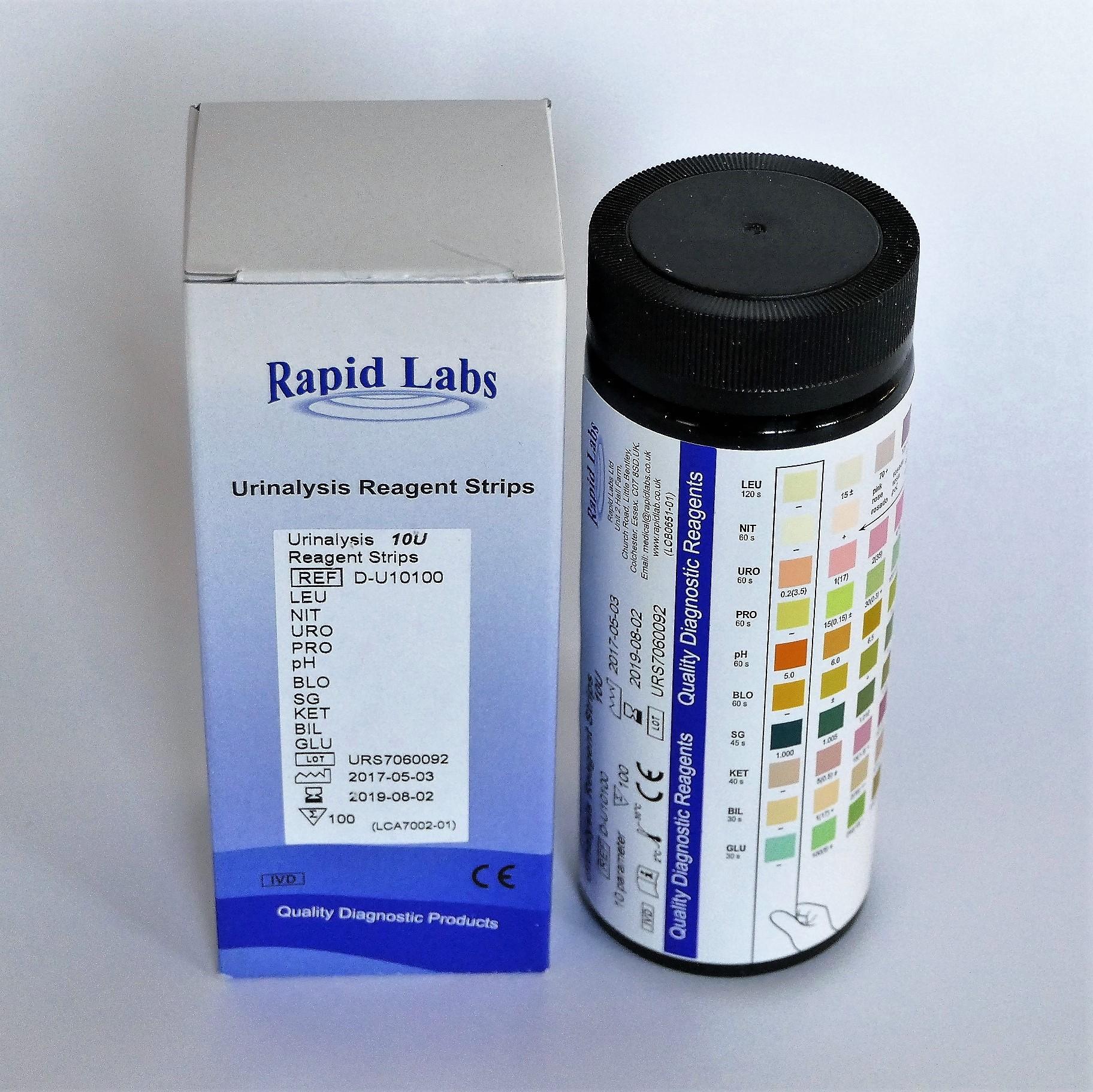 Un test urinaire à 10 paramètres de RAPID LAB, réalisé avec une bandelette réactive, permet de détecter diverses substances dans l'urine, notamment les leucocytes (globules blancs), ainsi que d'autres éléments tels que les protéines, le pH, les nitrites, les cétones, la bilirubine, le sang, l'urobilinogène, la gravité spécifique et le glucose . Il est important de noter que ces tests sont des outils de dépistage et que des résultats anormaux peuvent nécessiter des examens plus approfondis en laboratoire.