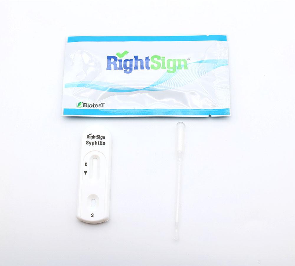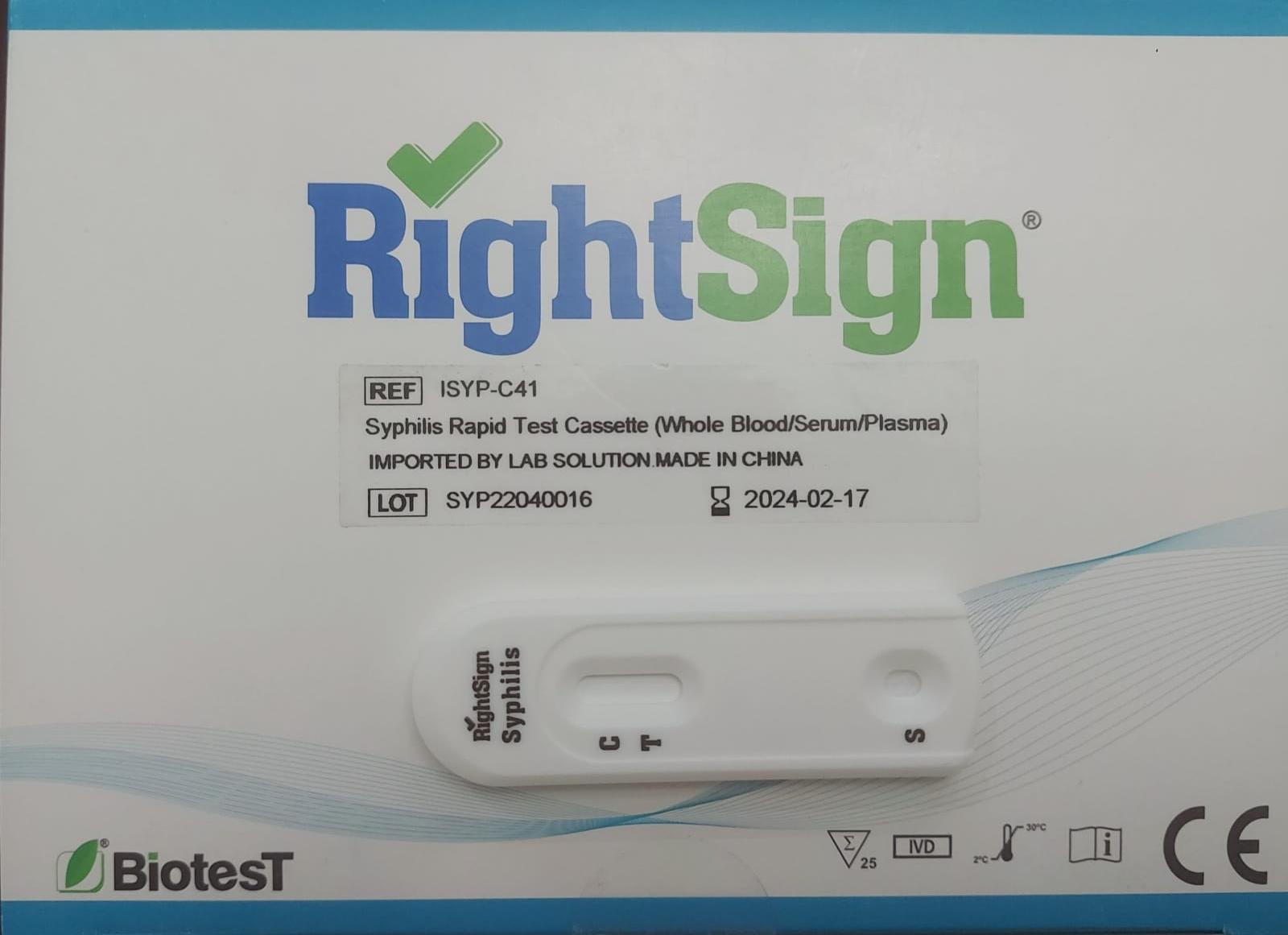 La syphilis est une maladie systémique causée par la bactérie * Treponema pallidum * (TP). La présentation clinique de la syphilis varie selon son stade, qui comprend les phases primaires, secondaires, latents et tertiaires. Le TP est une bactérie spirochite caractérisée par une enveloppe externe et une membrane cytoplasmique. La recherche a démontré un lien épidémiologique significatif entre l'acquisition et la transmission du virus du VIH et de la syphilis. La syphilis est marquée par plusieurs stades cliniques et des périodes prolongées d'infection asymptomatique latente. La syphilis primaire est identifiée par la présence d'un chancre au site de l'inoculation. Les anticorps contre la bactérie TP peuvent être détectés dans les 4 à 7 jours suivant la publication du chancre, et l'infection reste détectable jusqu'à ce que le patient reçoive un traitement approprié. La bande de test rapide de la syphilis (sang total / sérum / plasma) utilise une méthode à double antigène, en utilisant des particules enrobées d'antigène de syphilis et un antigène de syphilis fixé sur une membrane, pour détecter qualitativement et sélectivement les anticorps TP (IgG et IgM) dans le sang total, le sérum ou le plasma.