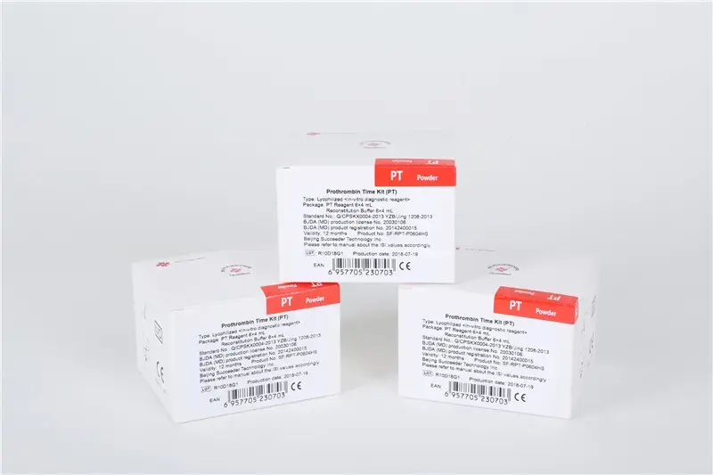 Le réactif PT est un test de diagnostic in vitro destiné à être utilisé pour la détermination du temps de prothrombine (TP) et des tests de facteur de coagulation effectués sur les systèmes de coagulation Succeeder.